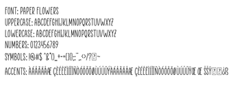 Paper Flowers เป็นครอบครัวแบบอักษรที่ไม่เหมือนใครซึ่งออกแบบมาสำหรับ Windows ที่แสดงถึงแก่นแท้ของความสง่างามที่ทำด้วยมือ แบบอักษรนี้มีรูปแบบตัวอักษรที่สูงและเพรียวบางซึ่งเลียนแบบเส้นที่ละเอียดอ่อนของกลีบดอกไม้ที่วาดด้วยมือ ให้ความรู้สึกเบาและโปร่งเหมาะสำหรับโครงการสร้างสรรค์ที่หลากหลาย เส้นที่บางและความไม่สม่ำเสมอเล็กน้อยทำให้มีคุณภาพที่เป็นธรรมชาติ ทำให้เหมาะสำหรับการใช้งานที่ต้องการสัมผัสของความสง่างามตามธรรมชาติ